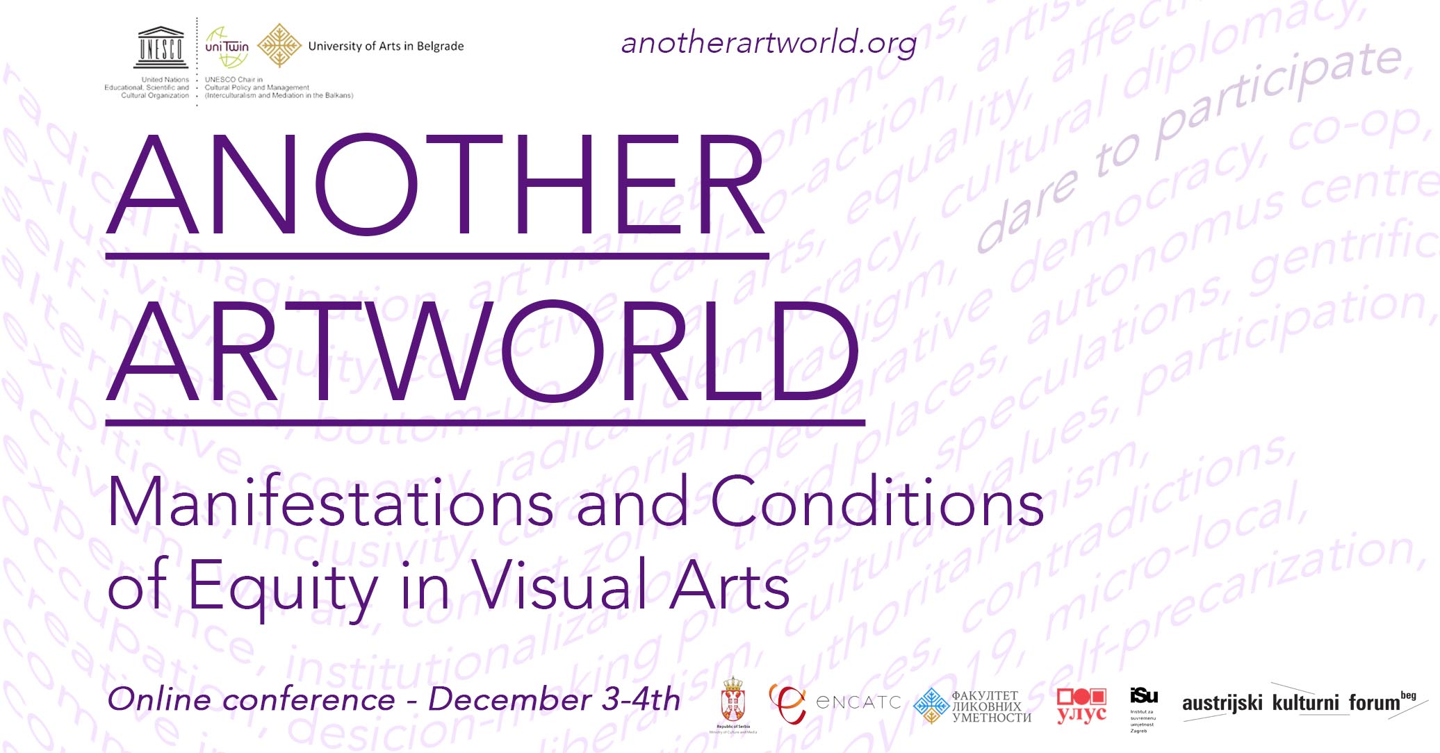 UNESCO katedra za kulturnu politiku i menadžment Univeriteta umetnosti u Beogradu organizira međunarodnu znanstvenu konferenciju “Another Artworld: Manifestations and Conditions of Equity in Visual Arts” u četvrtak, 3. i petak, 4. prosinca 2020.