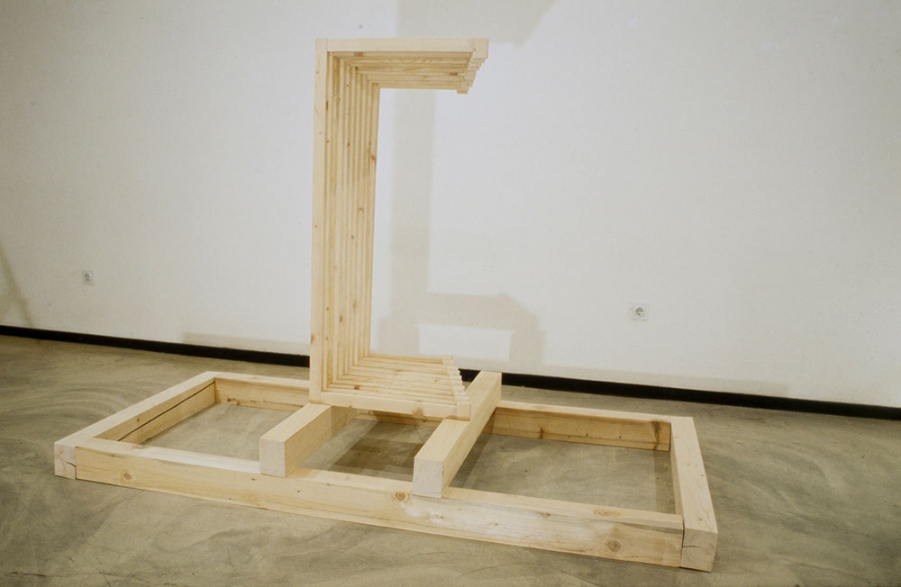 Osjećaj prostora, 1995. drvo Studio Josip Račić Skulpture 1993-1995. 28. 3. – 10. 4. 1996.