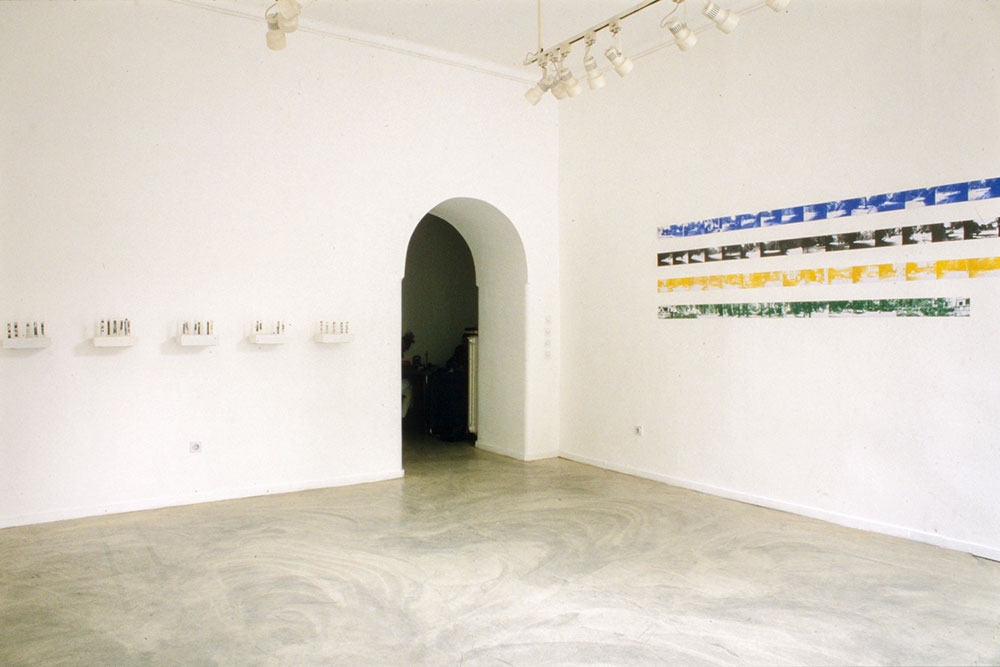 Eksterijer / Exterior , 1997. staklo, poliester, gips, epruvete, fotokopija na grafo foliji