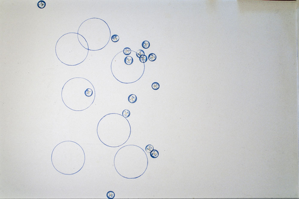 Lažni osmjeh / Phoney smile, 1998. crtež kredom po zidu, fotokopije na grafo foliji Studio Josip Račić Bez naslova / Untitled 9. 4. – 22. 4. 1889.