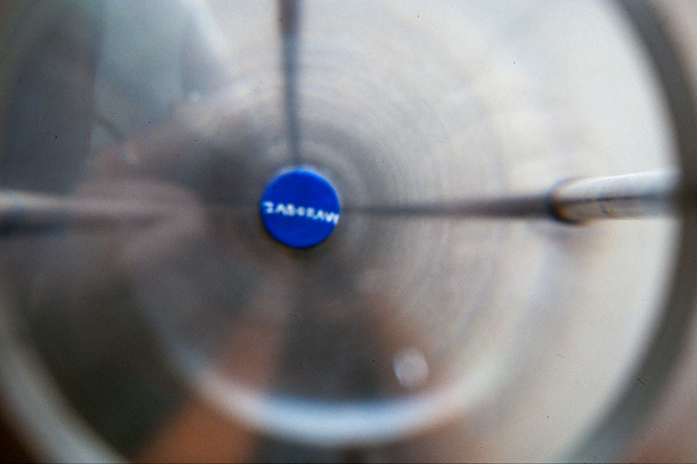 Deseta rečenica, 1996. aluminij , staklena leča, kamen, akrilik, 28 X 18 X 34 cm, 2 komada Moderna galerija Rubno, grupna izložba lipanj/srpanj 1997