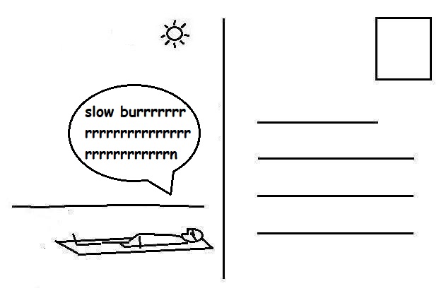 Društvena percepcija je da umjetnici zapravo i ne rade i da su na nekoj vrsti doživotnog godišnjeg odmora, pogotovo kad je riječ o konceptualnim umjetnicima. Ja živim u Hvaru i Hvar je ekstremno turistički orjentiran. Svako normalan se na ovaj ili onaj način bavi turizmom. Moja pozicija je izokrenuta, umjesto iznajmljivanja apartmana , oslobođen te dužnosti bliži sam turistima. Pišem razglednice i objavljujem ih na facebooku već četvrtu godinu. Riječ je o nekoj vrsti zen razglednica. Nemaju lice, lice im je prazno ili im lice nije lice, izokrenute su. Radio sam ih u Paint programu uglavnom iz praktičnih razloga i imaju „digitalni look“. Rad se rad referira na digitalnu, virtualnu ili revoluciju društvenih medija. U crtežu se ponavlja jedan te isti lik koji samo leži i uglavnom priča sam sa sobom. Ima dosta autobiografskih elemenata u tom liku, i možda je idealizirana slika mene. Dobar način iščitavanja rada je – praznim umom. Poželjno je da ga se ne pokušava razumjeti, jer rad nema nekakvo skriveno značenje – sve je na površini. Element humora je prisutan kao vrata u „više sfere svijesti“, humorom sve postaje lakše i humor se ne može naučiti. Jedna od razglednica govori „Ideje mi obično dolaze kad prestanem razmišljati“. Dakle se od mene kao autora i promatrača rada zahtijeva nerazmišljanje.